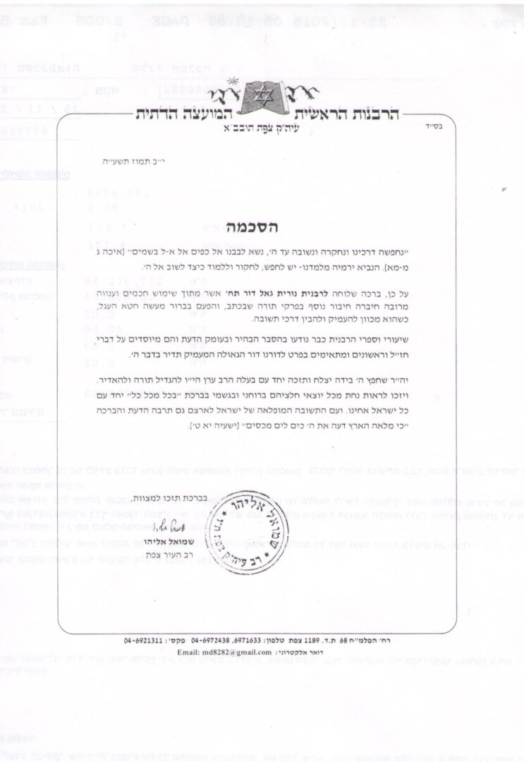הסכמת הרבנית נאורה בלייכר תליט"א