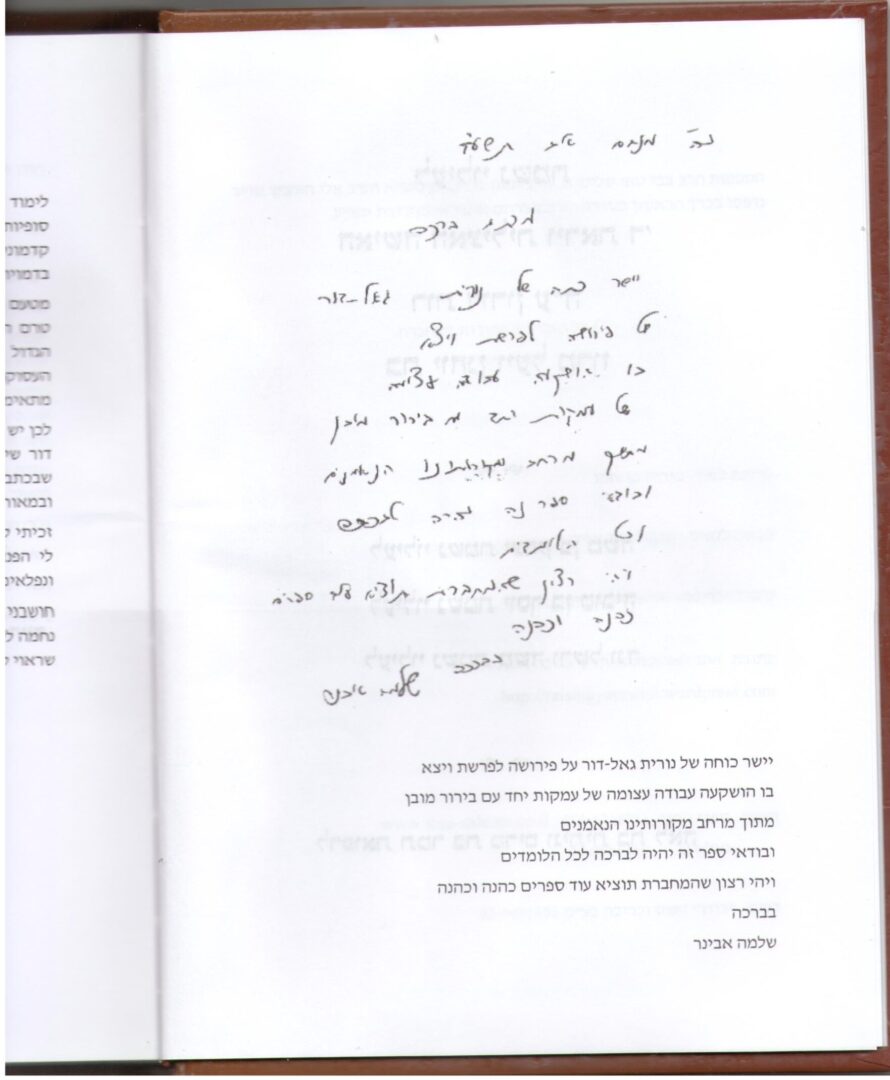 ומברך את המחברת שתזכה להמשיך בפועלה החשוב מאוד